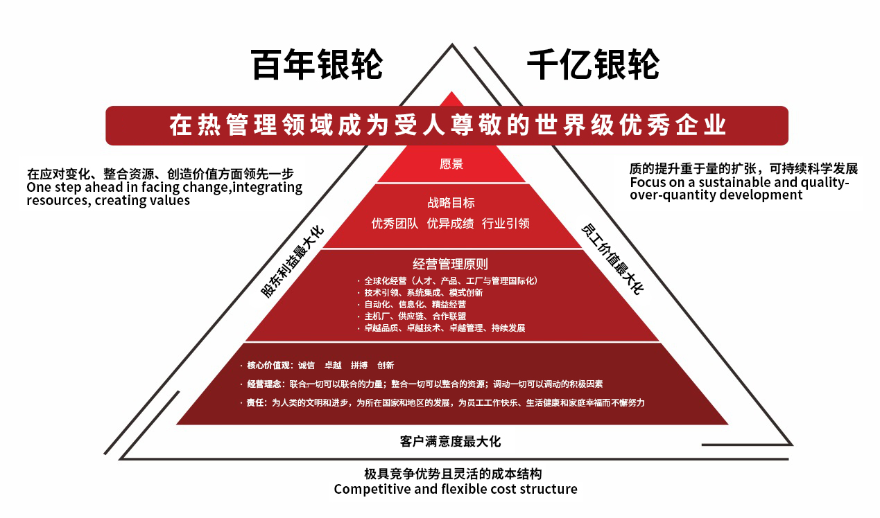 2019—2038年是公司的第二次創業階段。在這個階段中,銀輪將不斷拓展全球化視野,提升國際化能力,深化體制改革,加強技術開發,調整產品結構,創新商業模式,以革命自己的勇氣和決心推進銀輪持續向世界級優秀企業邁進。